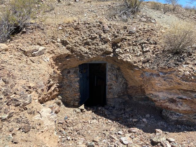 This is the Monterey Mine's little stone cabin area. Copper and Gold. 33.769265 ° -113.328523 °